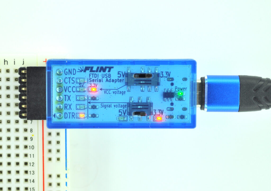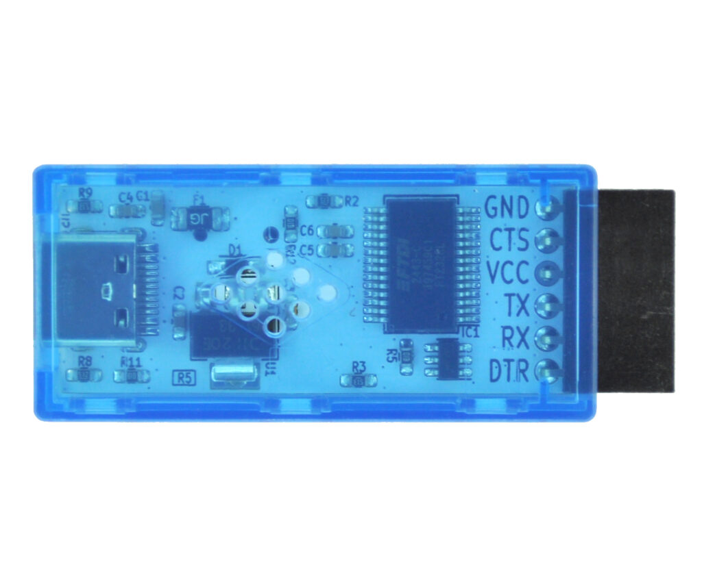 - 各信号ピンにステータスLED:RX/TX(通信中点滅)、CTS/DTR(HIGHで点灯)